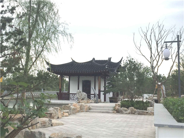 園區(qū)富民河北岸西段景觀綠化工程,位于富民河北岸(通湖大道至石公山路,石公山路至通達(dá)大道),總面積8024平方米,總投資約455萬元,整體風(fēng)格為蘇式風(fēng)格,借鑒蘇州園林元素,如滄浪亭、獅子林、拙政園和留園的園林特點(diǎn),打造園區(qū)的“蘇式園林”。