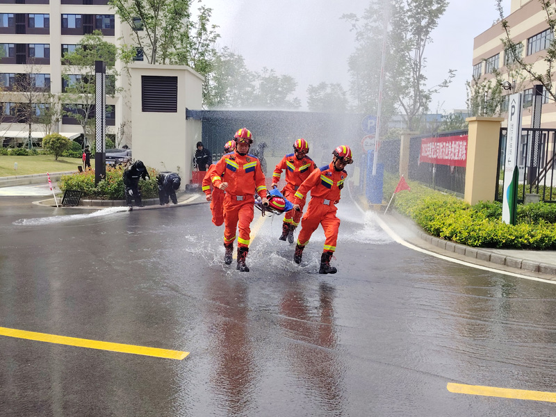 演練模擬受極端暴雨天氣影響,園區(qū)青年公寓出現(xiàn)嚴重積水、地下車庫被淹、樹木倒伏等復(fù)雜且具有挑戰(zhàn)性的防汛場景。公司防汛指揮部在接到險情報告后,迅速反應(yīng),第一時間啟動應(yīng)急預(yù)案。在總指揮的現(xiàn)場指揮調(diào)度下,應(yīng)急搶險隊伍迅速到達積水現(xiàn)場,隊員們熟練地安裝移動排水裝置,將路面積水強排至附近排水管道,快速緩解了路面積水狀況。對于地下車庫積水問題,同時對車庫內(nèi)的車輛進行有序疏散和安置,最大程度減少了可能的財產(chǎn)損失。演練過程緊張有序,各環(huán)節(jié)銜接緊密,各部門之間協(xié)同配合默契,充分展示城發(fā)公司應(yīng)對防汛突發(fā)事件的能力,實現(xiàn)了從預(yù)案到實操的無縫銜接。